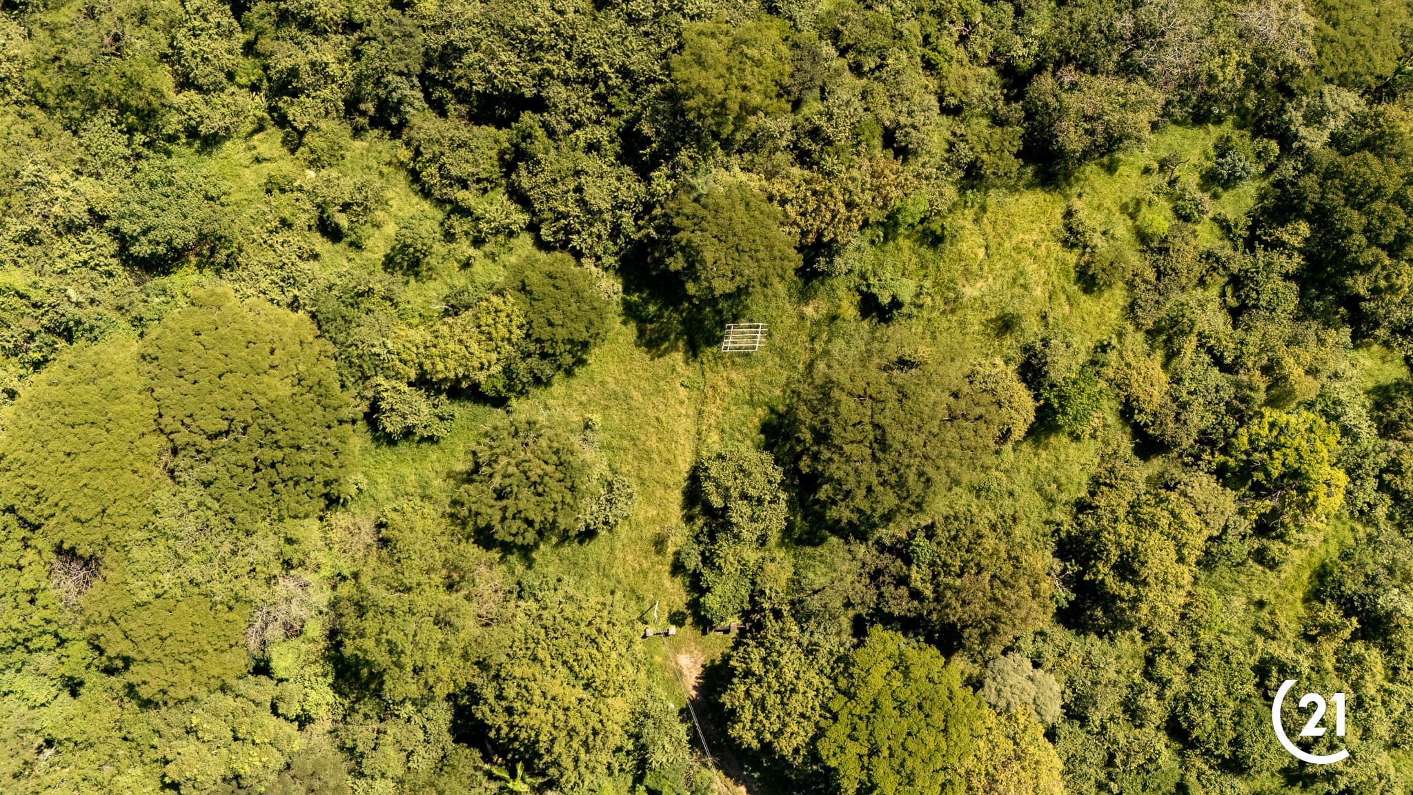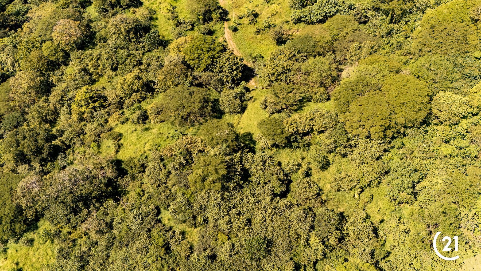 Lot 21: 6,406 m² (1.59 acres) with a rustic jungle cabin and double-level canopy-viewing deck — perfect for quiet mornings, wild play, or stargazing at night.