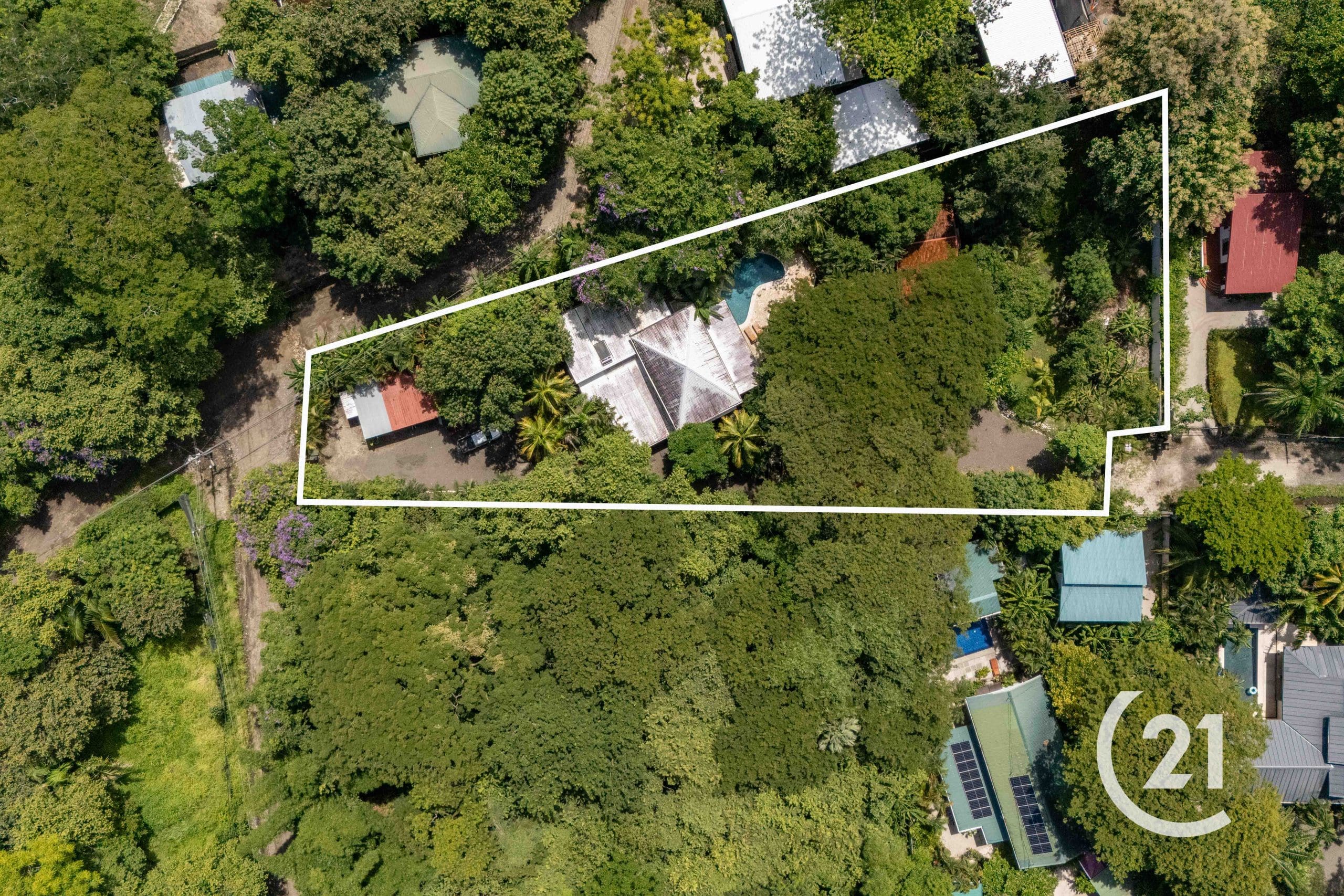 The property boasts double road access with two separate entrances and parking space for up to 12 vehicles, a rare and valuable feature in Playa Pelada. The lot is spacious and beautifully landscaped, with multiple fruit trees and lush vegetation, offering privacy and a tranquil setting ideal for family living.