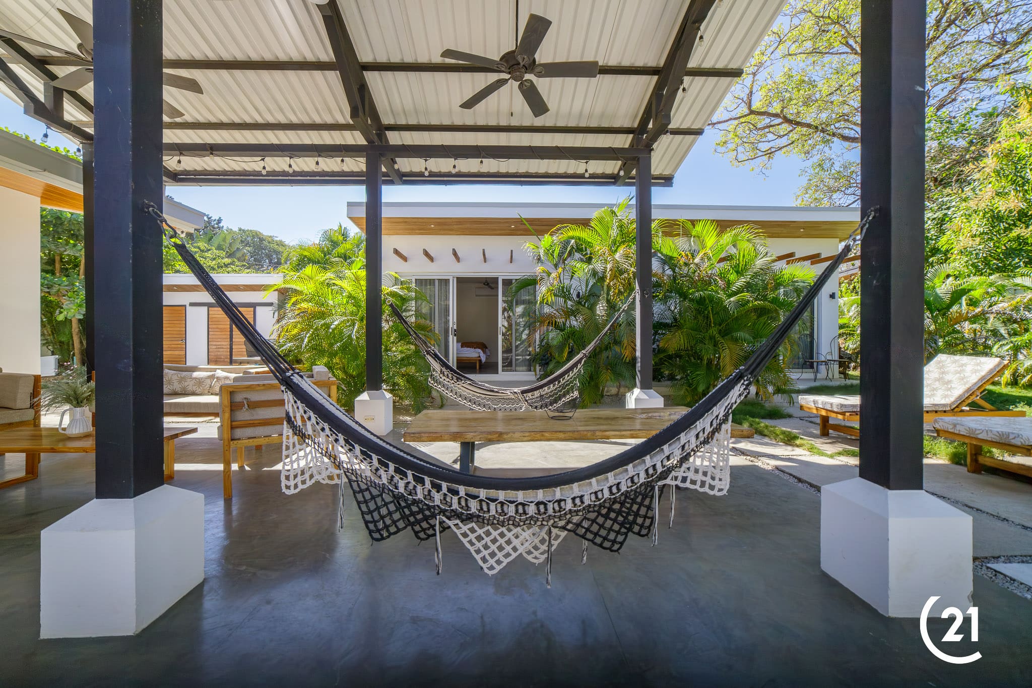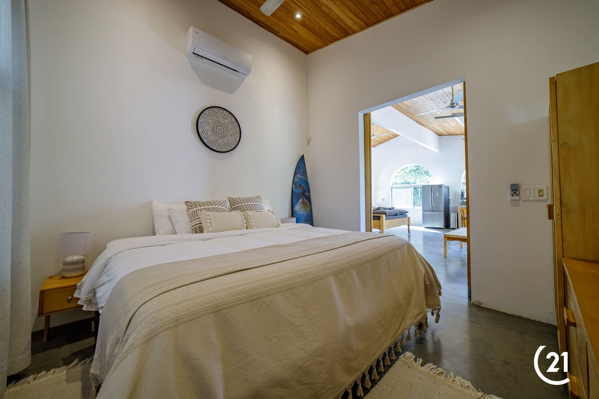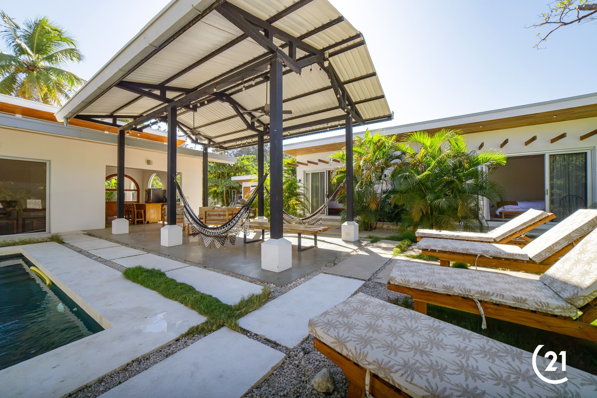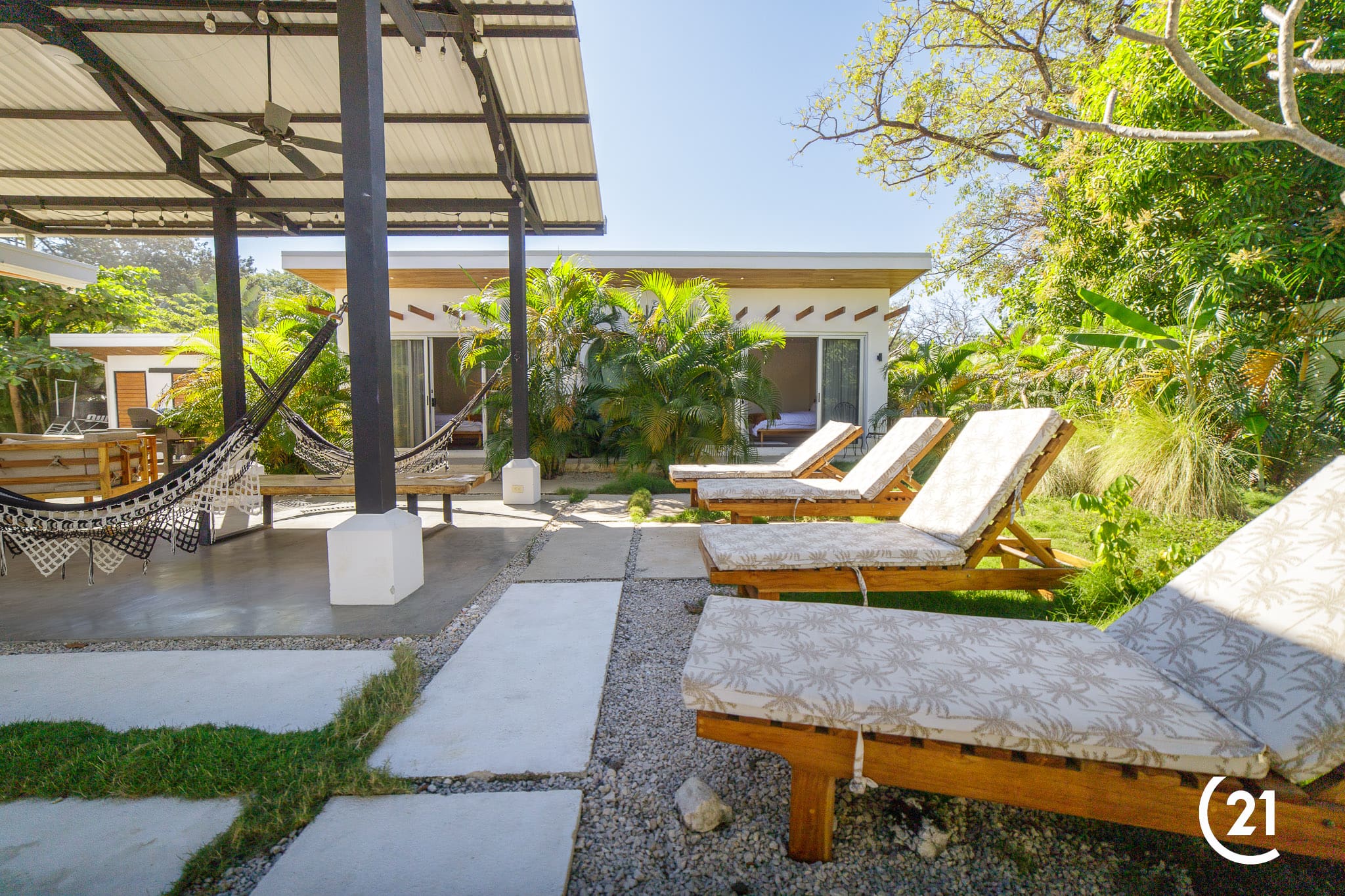 Experience the best of Nosara’s serene coastal living at Casa Playa, tucked away in the tranquil area of Playa Pelada. Known for its upscale residential charm and peaceful ambiance, Pelada offers the perfect balance of privacy, relaxation, and convenient access to the area’s scenic shores and vibrant attractions.One of Casa Playa’s defining features is its semi-private path leading directly to the shoreline—just a 4-minute walk from your door. Wake up with an early-morning beach stroll, cool off with a midday dip, or savor a quiet sunset by the water. The nearby beach remains a haven of natural beauty, inviting you to truly slow down and soak in the moment.Casa Playa centers around a lush internal garden and a sparkling pool, seamlessly blending indoor and outdoor living. Relax in hammocks, dine alfresco on the covered patio, or lounge by the pool. The property’s walled perimeter provides a private sanctuary, where you may start your day with the songs of tropical birds and the distant calls of howler monkeys.Inside the main house, three bedrooms, each with its own air conditioning unit, await:A master suite with a king bed, dresser, and closet