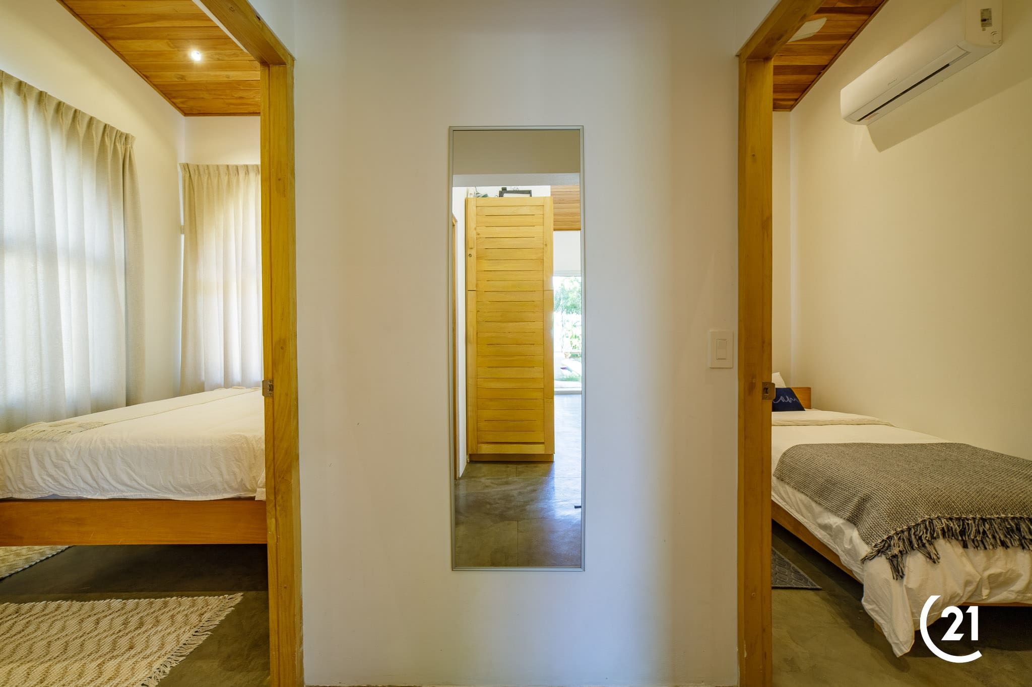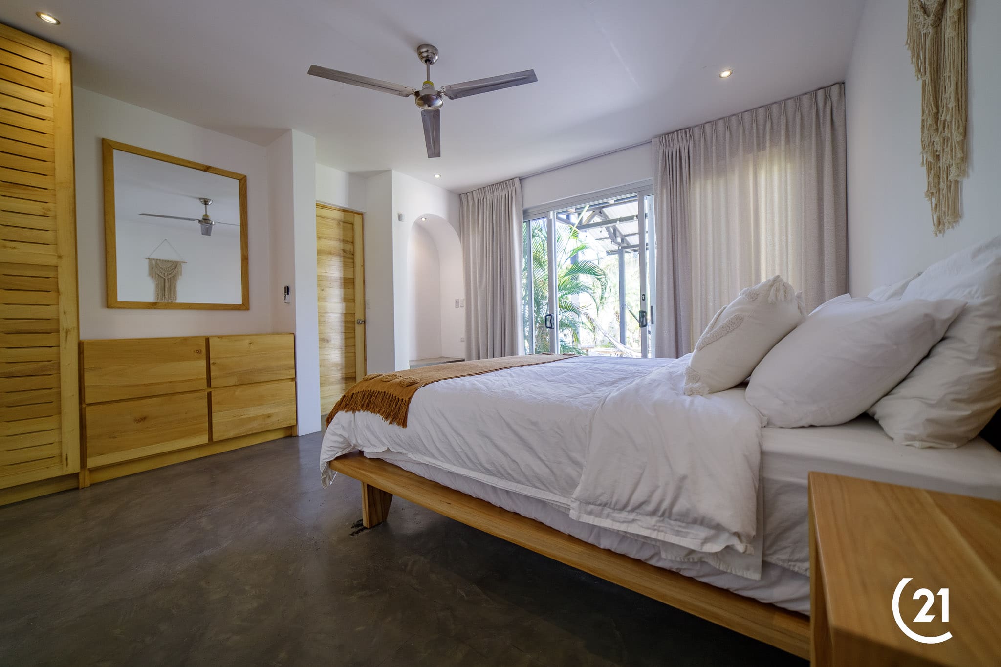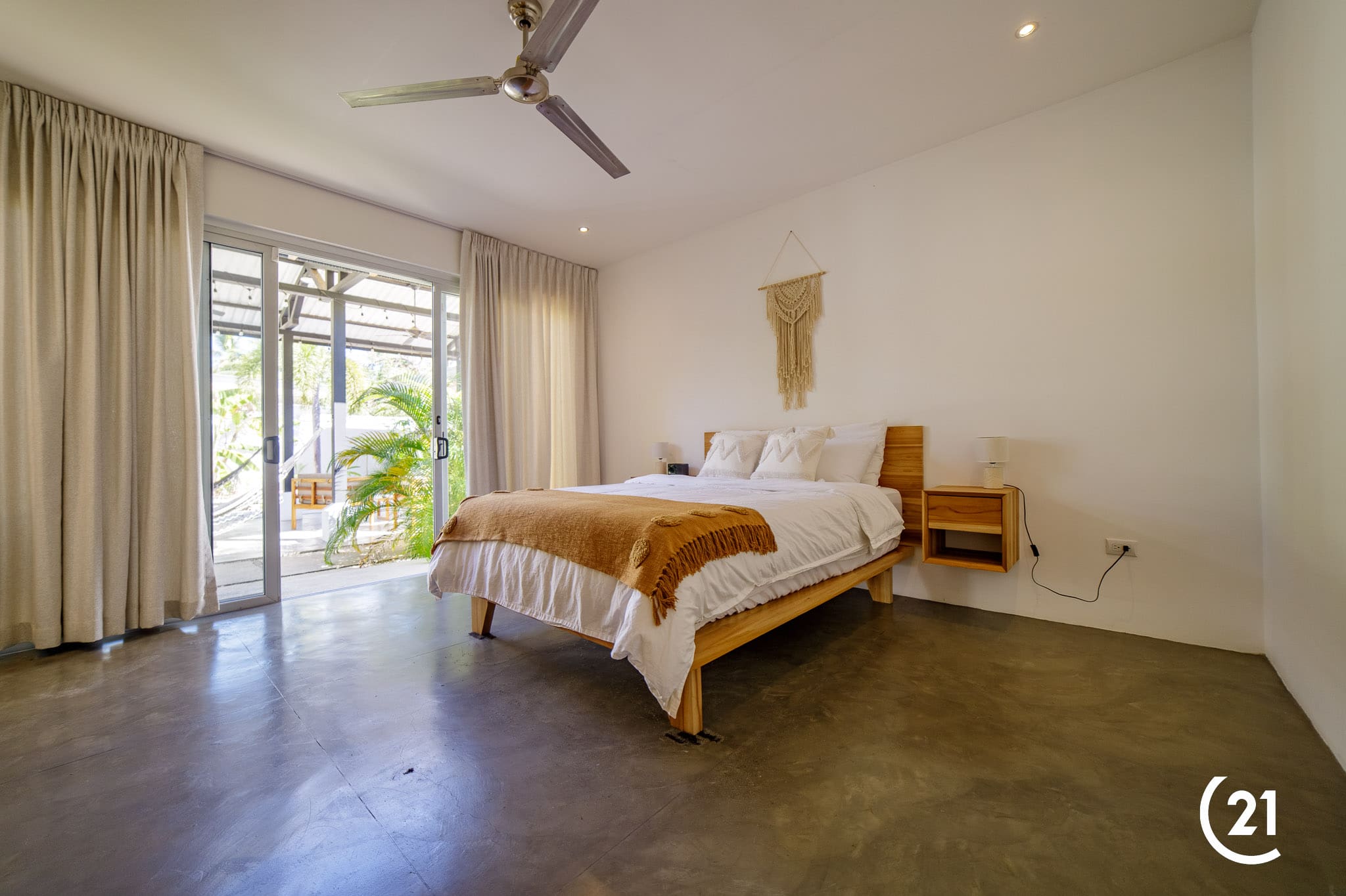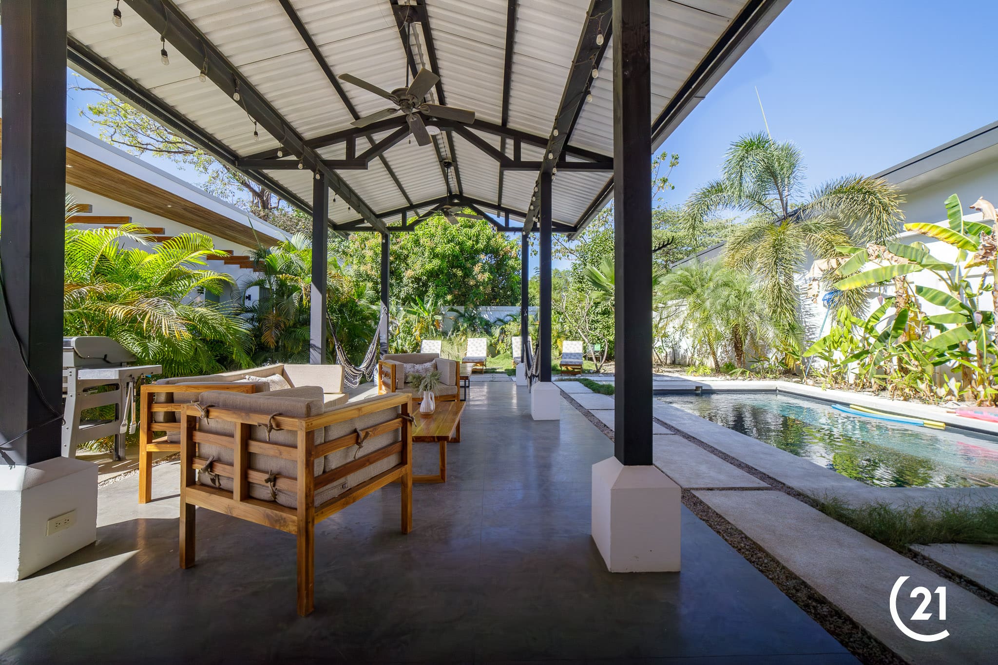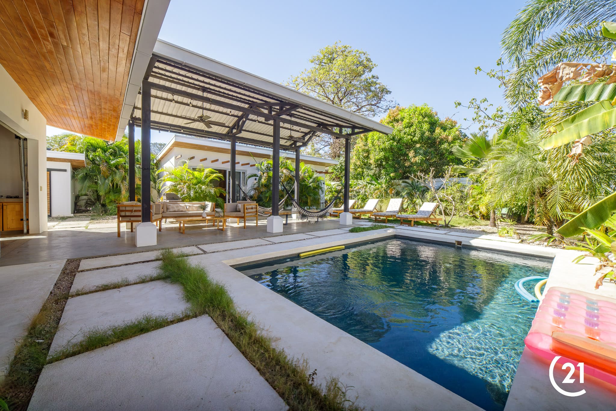 Experience the best of Nosara’s serene coastal living at Casa Playa, tucked away in the tranquil area of Playa Pelada. Known for its upscale residential charm and peaceful ambiance, Pelada offers the perfect balance of privacy, relaxation, and convenient access to the area’s scenic shores and vibrant attractions.One of Casa Playa’s defining features is its semi-private path leading directly to the shoreline—just a 4-minute walk from your door. Wake up with an early-morning beach stroll, cool off with a midday dip, or savor a quiet sunset by the water. The nearby beach remains a haven of natural beauty, inviting you to truly slow down and soak in the moment.Casa Playa centers around a lush internal garden and a sparkling pool, seamlessly blending indoor and outdoor living. Relax in hammocks, dine alfresco on the covered patio, or lounge by the pool. The property’s walled perimeter provides a private sanctuary, where you may start your day with the songs of tropical birds and the distant calls of howler monkeys.Inside the main house, three bedrooms, each with its own air conditioning unit, await:A master suite with a king bed, dresser, and closet
