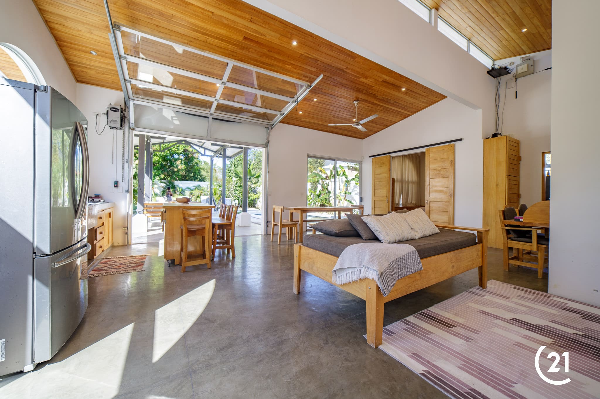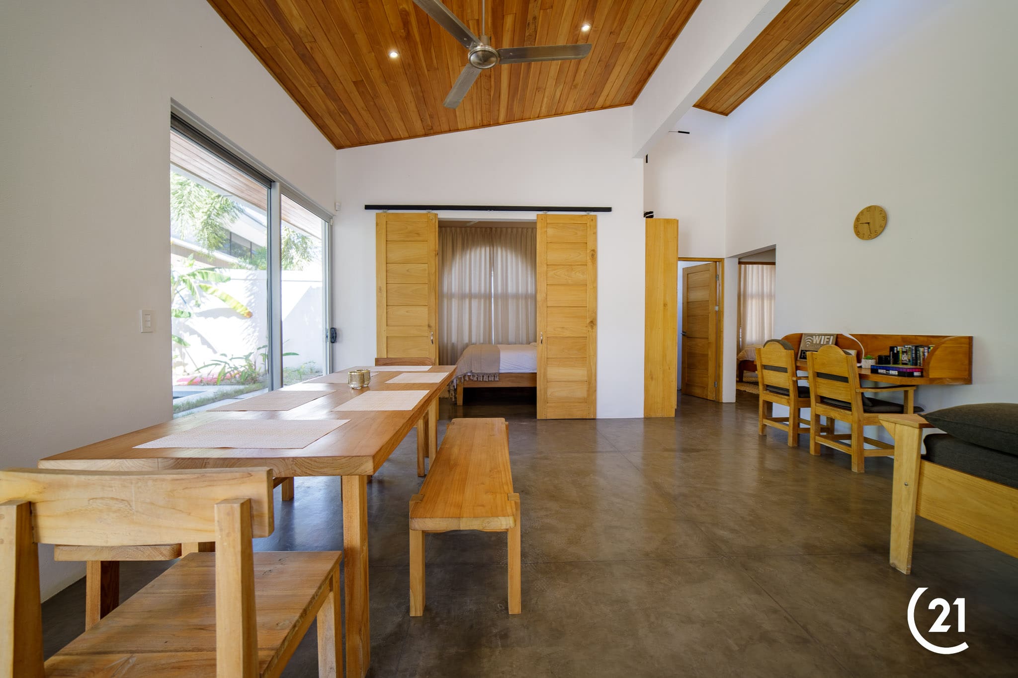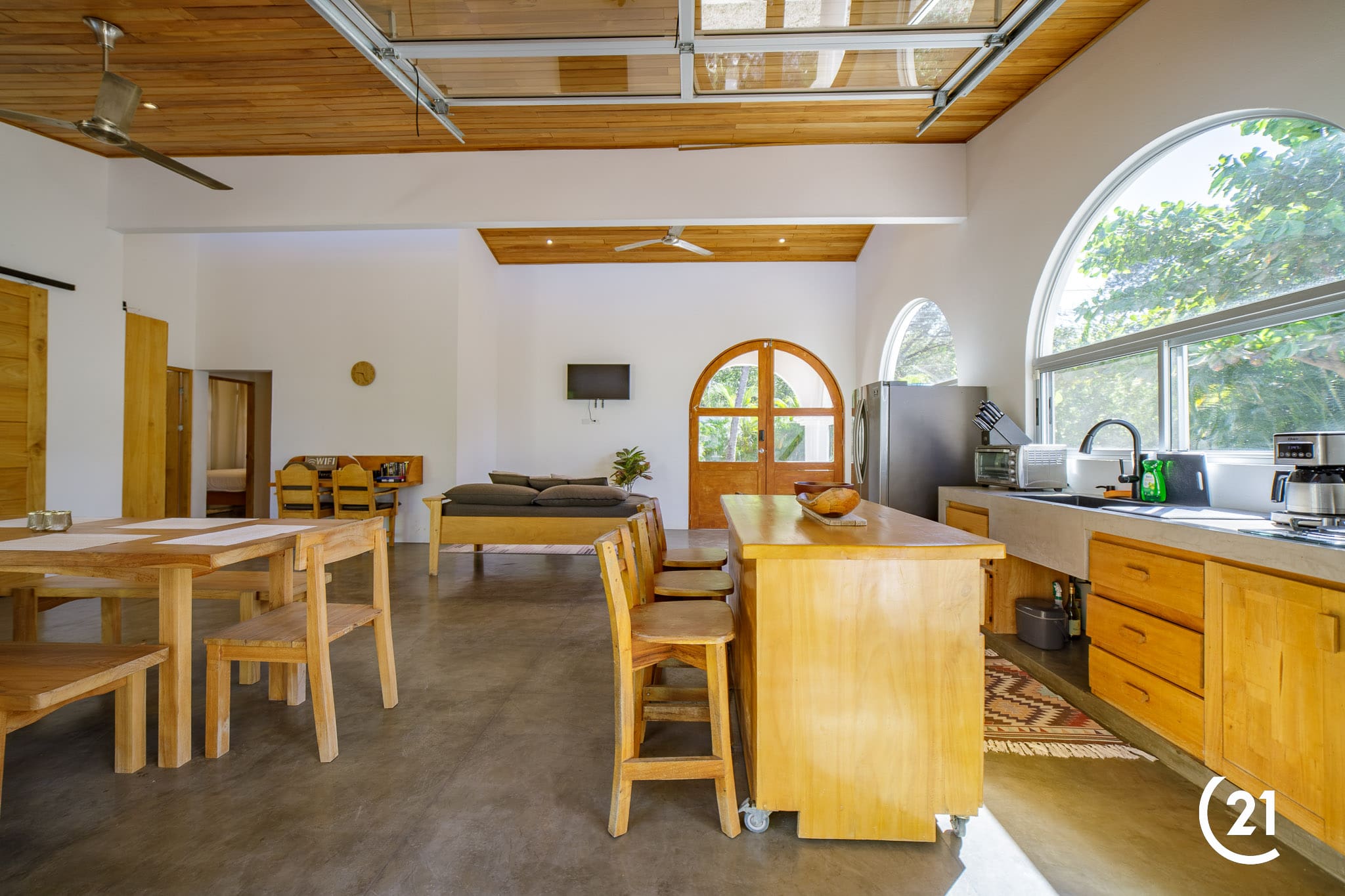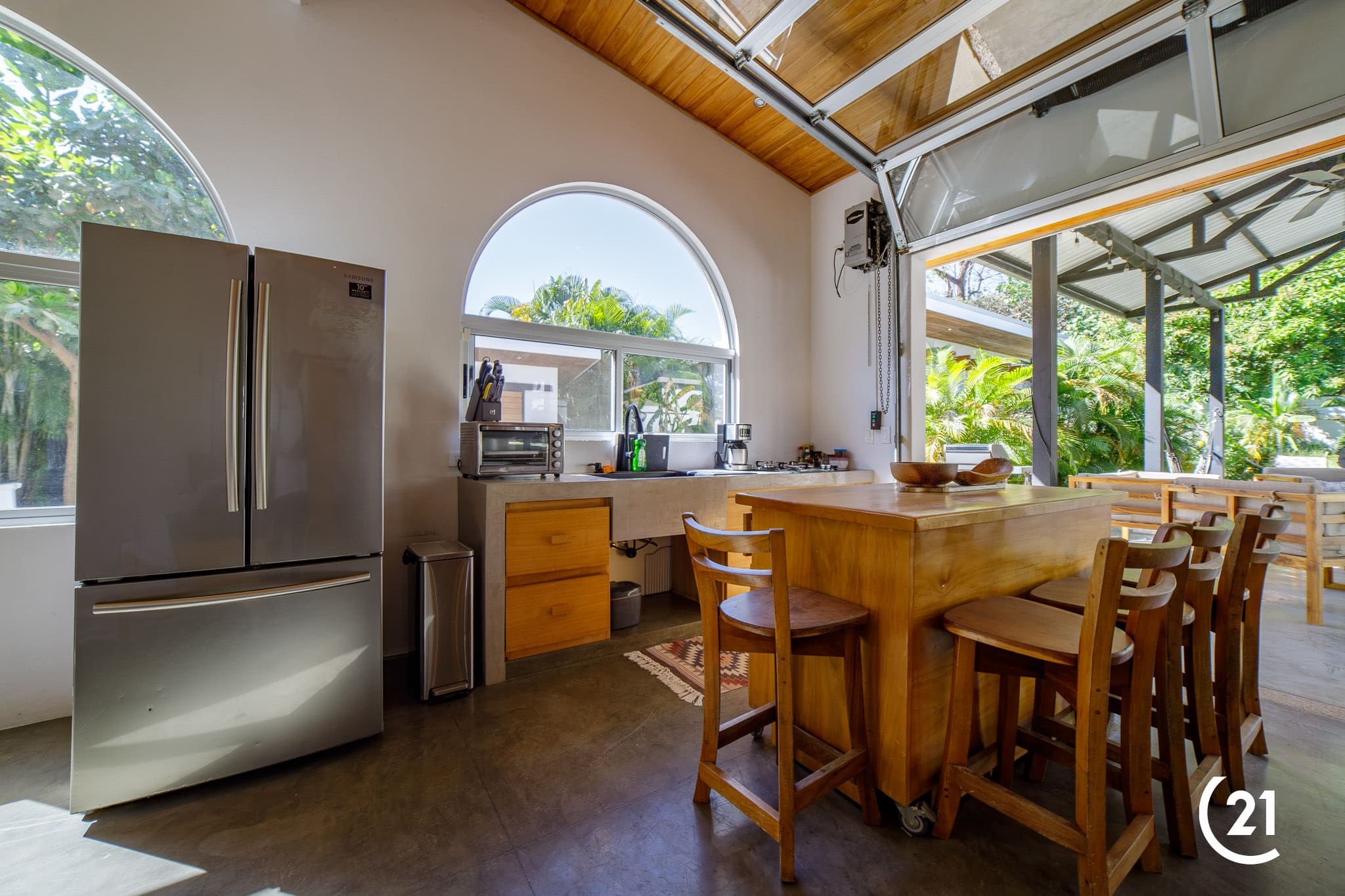 Experience the best of Nosara’s serene coastal living at Casa Playa, tucked away in the tranquil area of Playa Pelada. Known for its upscale residential charm and peaceful ambiance, Pelada offers the perfect balance of privacy, relaxation, and convenient access to the area’s scenic shores and vibrant attractions.One of Casa Playa’s defining features is its semi-private path leading directly to the shoreline—just a 4-minute walk from your door. Wake up with an early-morning beach stroll, cool off with a midday dip, or savor a quiet sunset by the water. The nearby beach remains a haven of natural beauty, inviting you to truly slow down and soak in the moment.Casa Playa centers around a lush internal garden and a sparkling pool, seamlessly blending indoor and outdoor living. Relax in hammocks, dine alfresco on the covered patio, or lounge by the pool. The property’s walled perimeter provides a private sanctuary, where you may start your day with the songs of tropical birds and the distant calls of howler monkeys.Inside the main house, three bedrooms, each with its own air conditioning unit, await:A master suite with a king bed, dresser, and closet