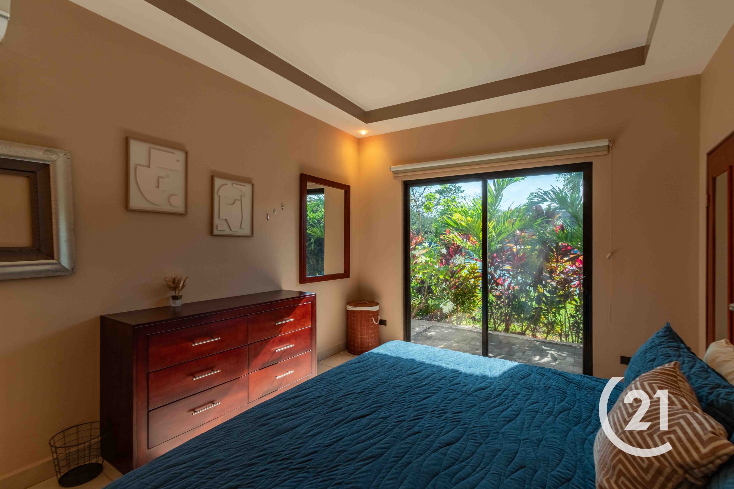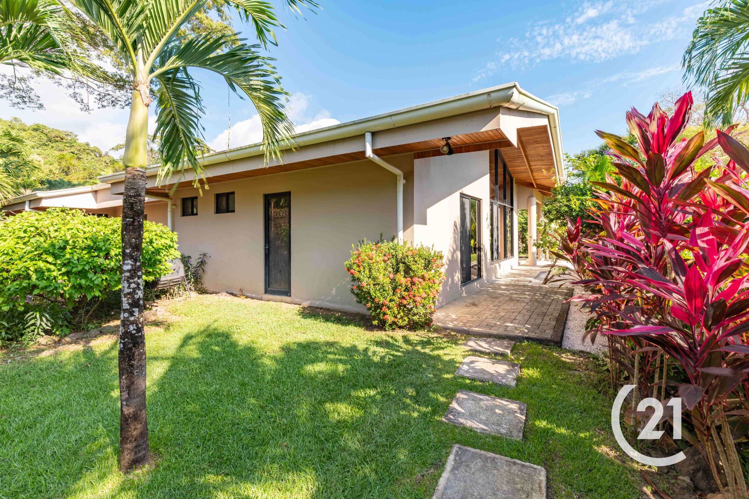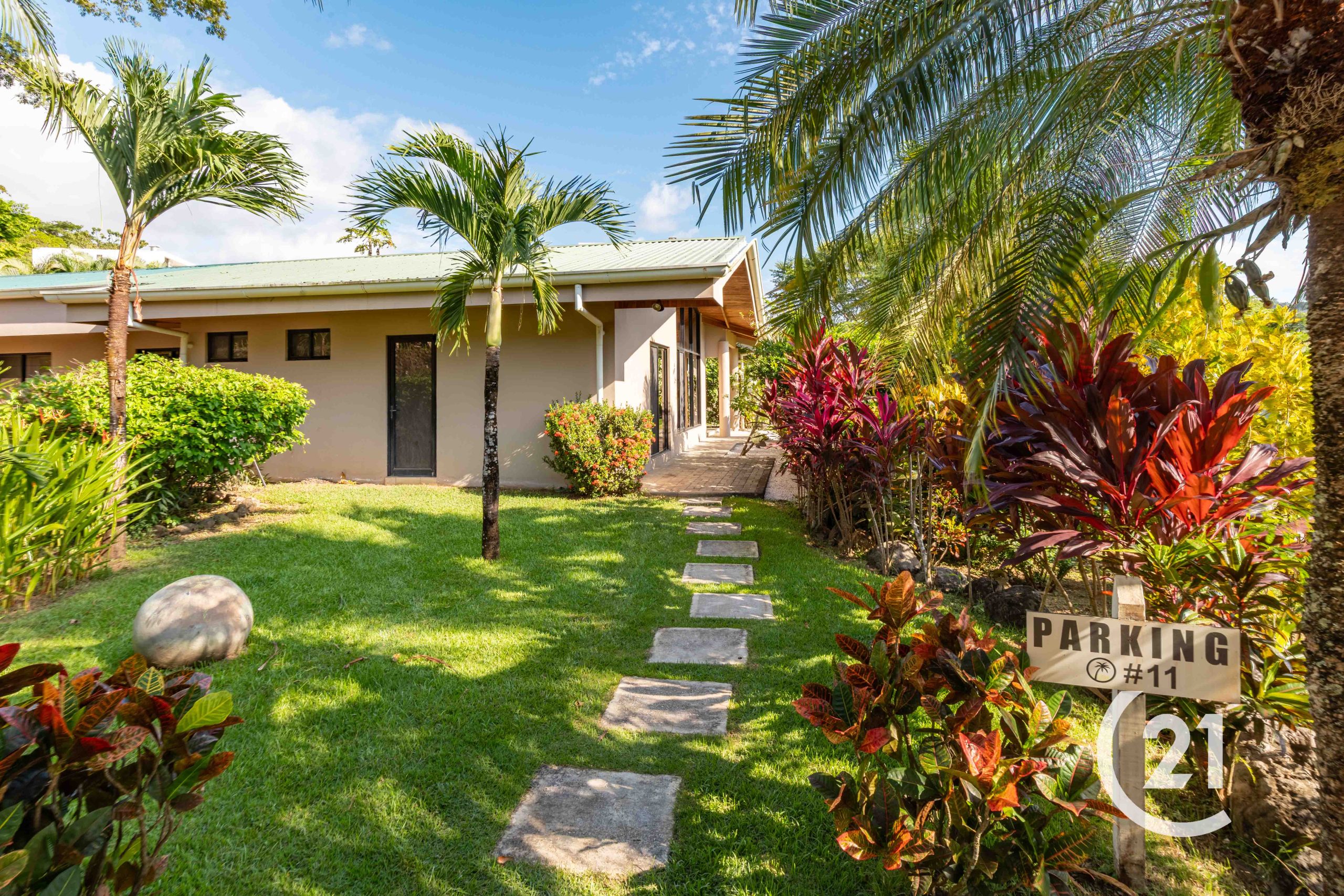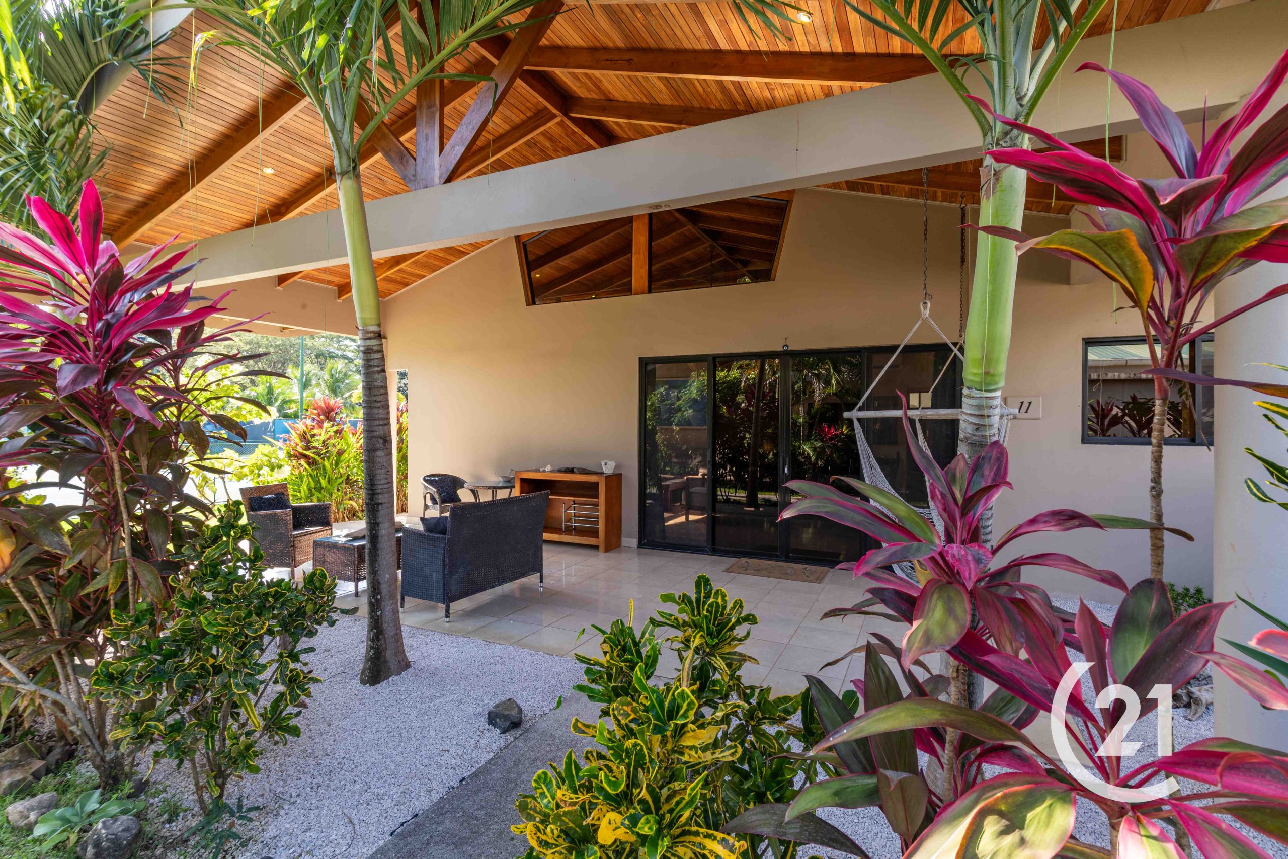 As a corner unit, it features private entrances and is surrounded by beautifully landscaped tropical plants for added privacy. Enjoy a covered patio and exclusive covered parking for two cars.