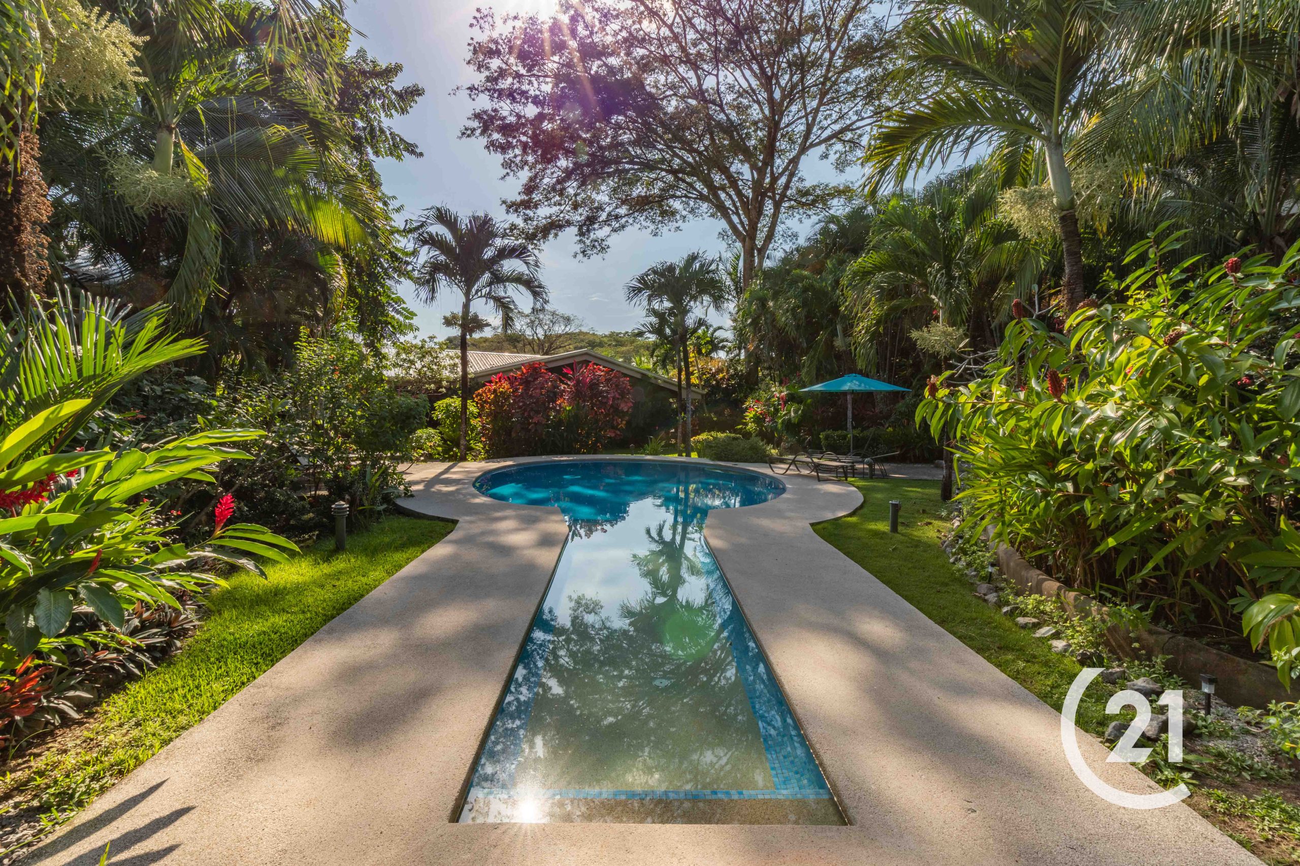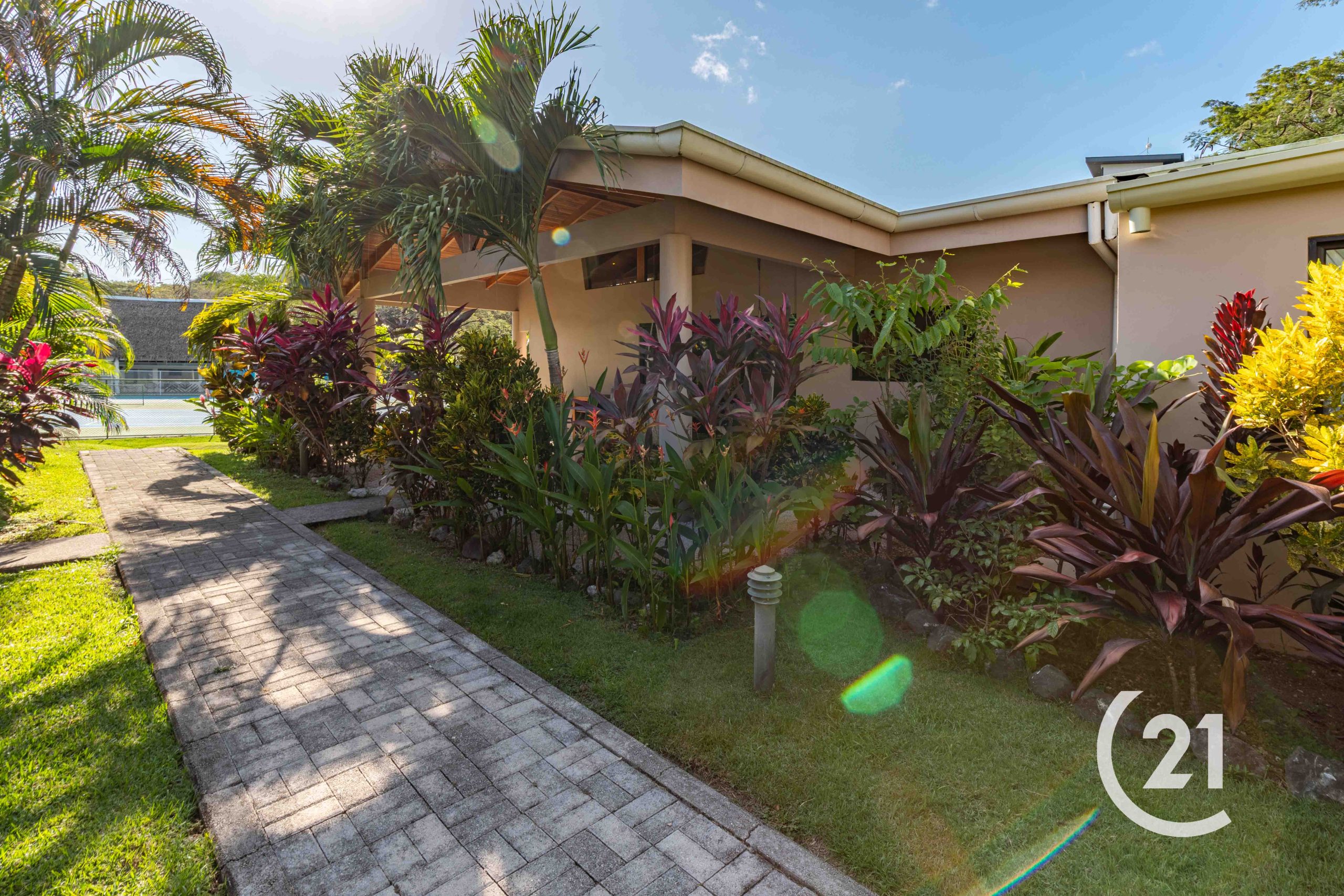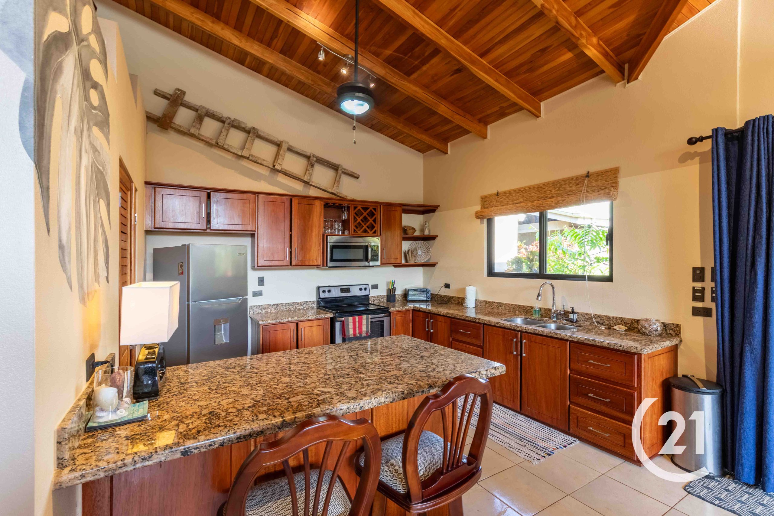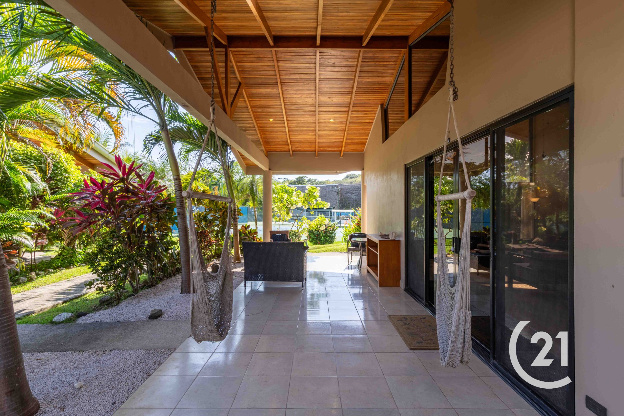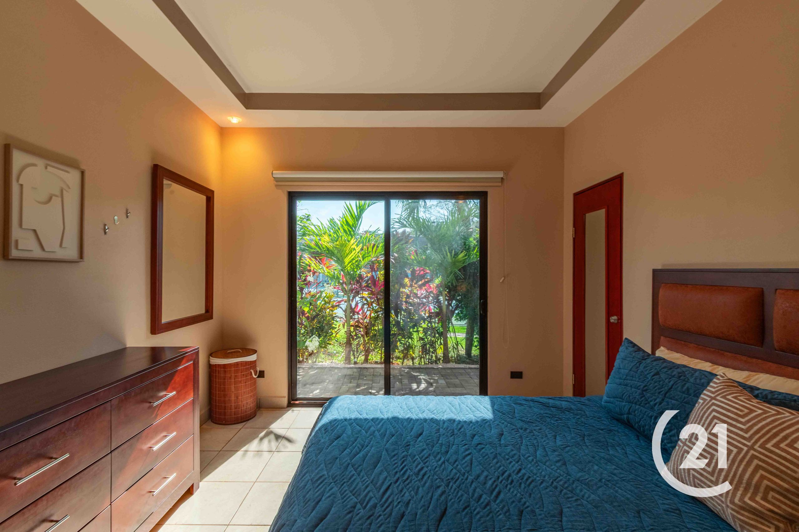 As a corner unit, it features private entrances and is surrounded by beautifully landscaped tropical plants for added privacy. Enjoy a covered patio and exclusive covered parking for two cars.