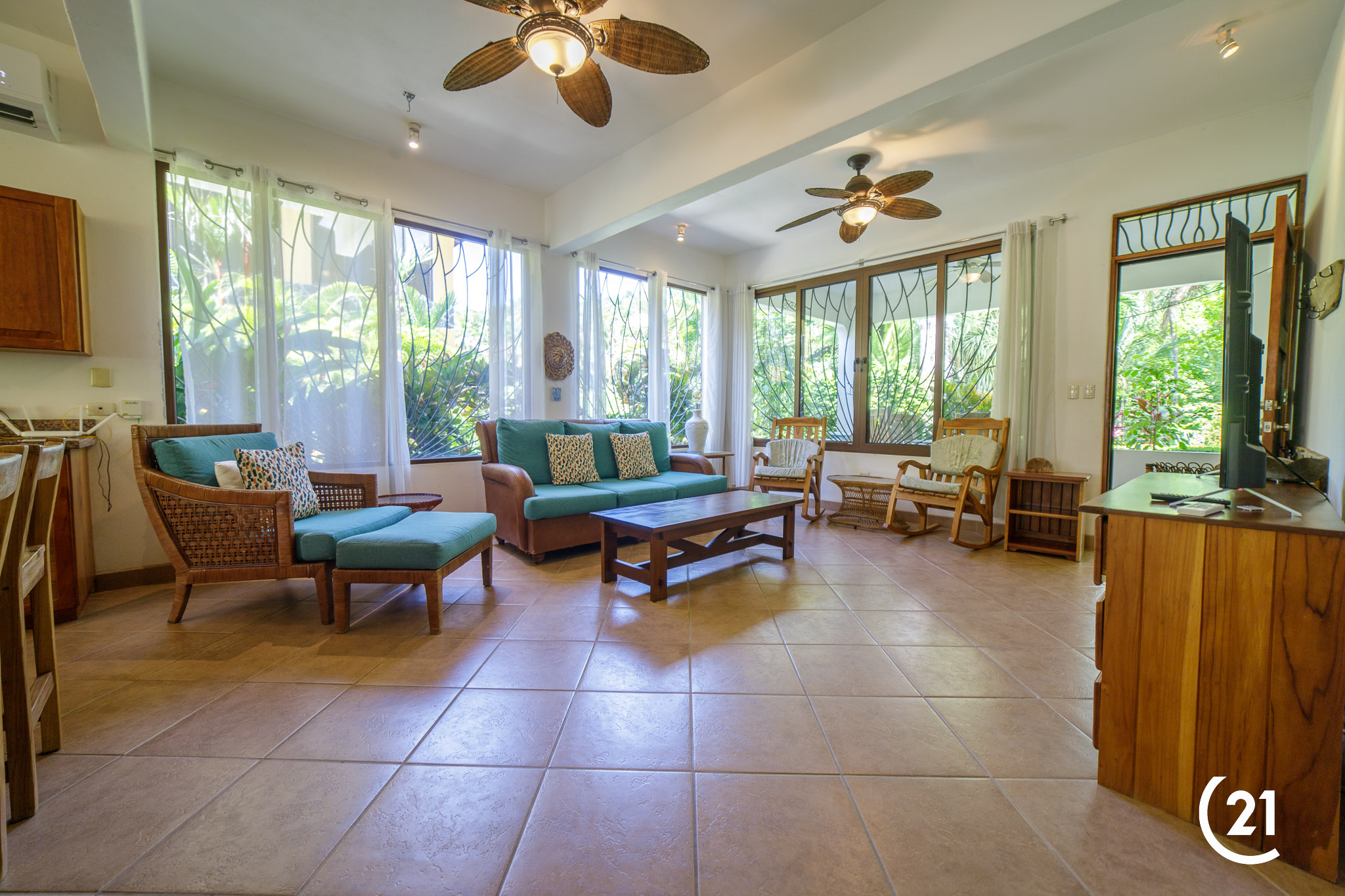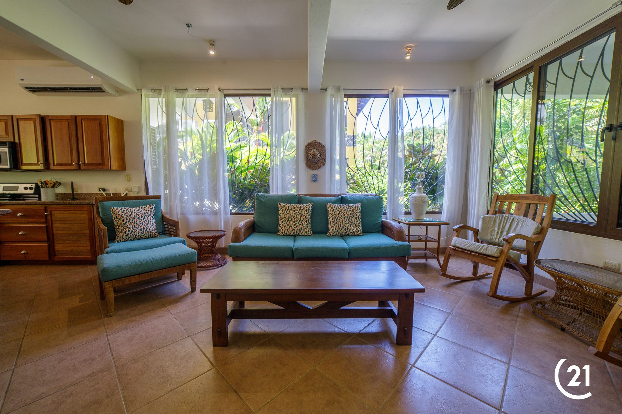 Literally just steps from the most private section of the beach on Playa Pelada is this fantastic opportunity for this spacious 2BR/2BA, first floor condominium. Live in style with the most convenient way get to the beach… a 2 minute walk! The private trail from the Las Palmas Condos to the white sand and warm tropical ocean tunnels through the jungle of the wildlife refuge/maritime zone. If you do not feel like the beach, there is a large community pool even closer.